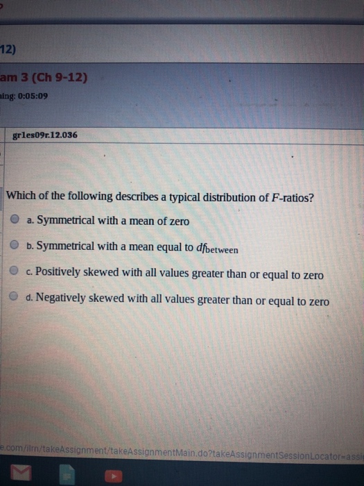 Negatively skewed with all values greater than or equal to zero d. The dfs for the denominator the total number of samples the number of groups 15 3 12. The F statistic is a ratio a fraction.